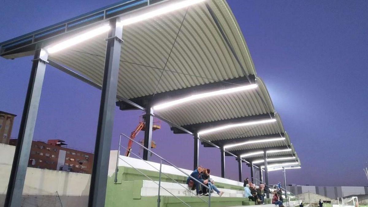 Recibimos el encargo de redactar el proyecto para la cubrición parcial de uno de los graderíos del Campo de Fútbol Federativo “Sebastián Barajas”, dentro de un proyecto también redactado por nuestro estudio, de reforma y mejora de las instalaciones.